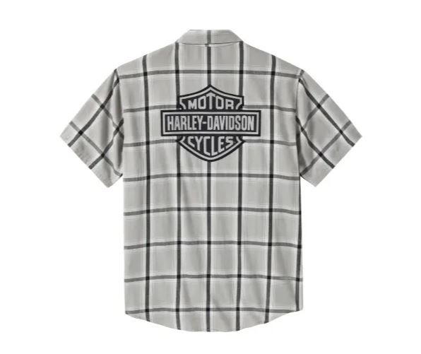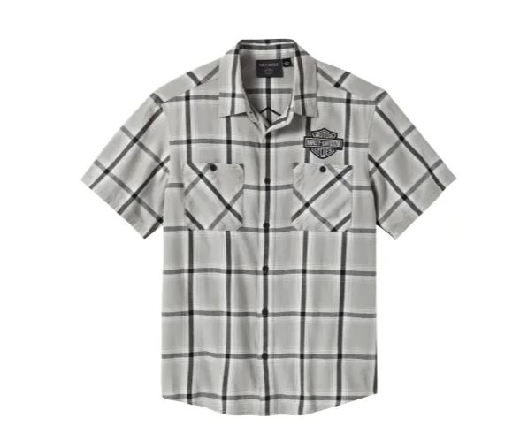 Mit unserem Bar & Shield Staple-Kurzarmhemd verleihst du deinem karierten Look das gewisse Etwas. Es ist aus atmungsaktivem und dennoch strapazierfähigem Baumwolltwill gefertigt und bietet langanhaltenden Tragekomfort. Dieses Herren-Button-down-Hemd verfügt über eine Stiftschlaufe und einen verdeckten, herunterklappbaren Kragen, der unter der Motorradausrüstung nicht verrutscht. Die Oberfläche ziert unser ikonisches Bar & Shield-Logo auf der Vorderseite und auf der Rückseite, was für einen klassischen Harley-Davidson-Look sorgt.