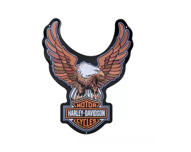 Individuell geformtes Bar & Shield Eagle Blechschild. Geprägte Akzente und leuchtende Farben verleihen Tiefe und Dimension.