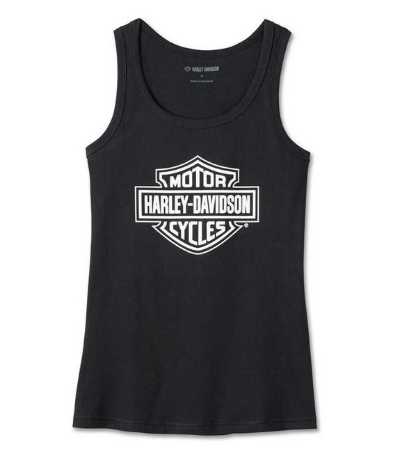 Damen Bar & Shield Logo ärmelloses Shirt schwarz gerippt