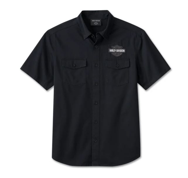 Egal ob über der Hose getragen oder eingesteckt, unser Ashes Short Sleeve Shirt ist zeitlos. Es ist aus leichtem, atmungsaktivem Twill aus Baumwolle gefertigt, der für einen getragenen Look einer Stonewashed-Behandlung unterzogen. Dieses Button-Down-Hemd für Herren in lockerer Passform hat einen Kragen mit versteckten Druckknöpfen, der beim Fahren unter Deiner Motorradbekleidung an seinem Platz bleibt. Das gestickte Branding auf der Vorderseite und die matte Satin-Applikation auf dem Rücken sorgen für einen gehobenen Harley-Davidson Look.