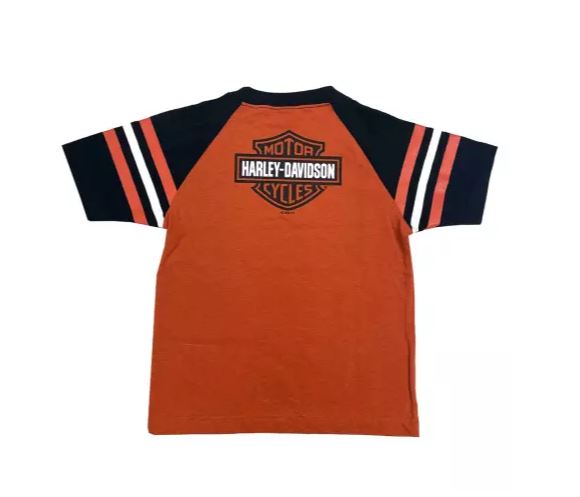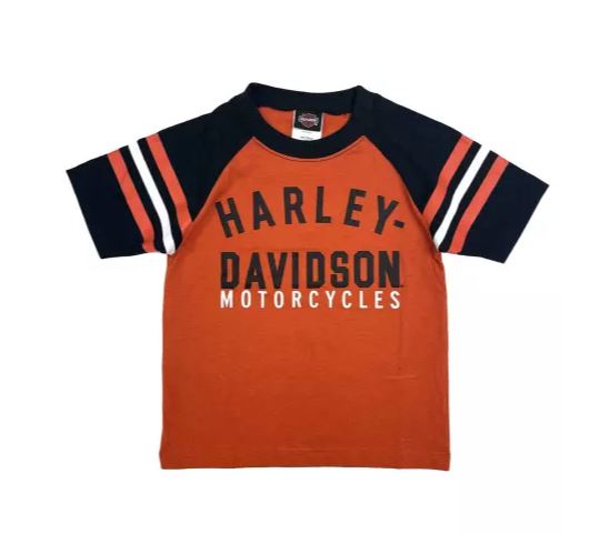 Kinder T-Shirt orange mit gestreiften Ärmeln